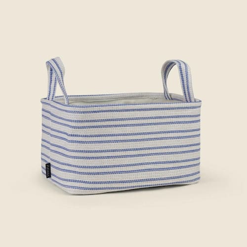 Produzido em algodão, o cesto é leve, macio e resistente, ideal para armazenar pequenos objetos, acessórios, roupas leves, itens de higiene ou utilidades do dia a dia. Seu tamanho compacto facilita o uso em quartos, banheiros, closets ou lavanderias, otimizando o espaço de forma prática.