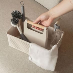 O cesto organizador multiuso 8L é a solução ideal para armazenar e organizar produtos de limpeza, toalhas, itens de higiene, e muito mais. Possui divisória interna para melhor acomodar seus objetos. Produzido em material resistente e durável, possui alça ergonômica em bambu, deixando o manuseio mais seguro e confortável, fabricado em cor neutra, com acabamento fosco que combina com vários estilos de decoração.