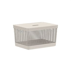 Cesto Organizador Com Tampa Grid Bege 20 Litros - Ou