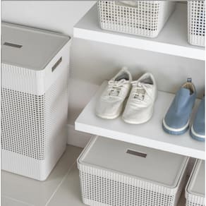 A linha de Cestos Grid foi desenvolvida com um mix perfeito entre conforto, design e funcionalidade. Os cestos possuem diversos tamanhos, são empilháveis e versáteis. São diversas opções com cores neutras e acabamento fosco, que combinam com qualquer ambiente.