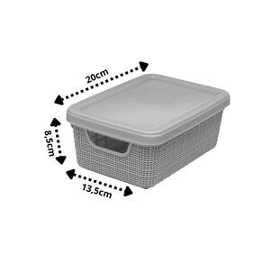 Com uma textura inspirada no tecido juta, essa caixa possui capacidade de 1,8 litros. Sua tampa permite uma organização flexível, e ela pode ser empilhada com outros tamanhos da linha.