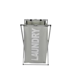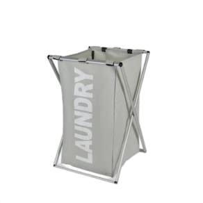 Organize suas roupas com elegância e eficiência com o Cesto Organizador Cromado com Saco Cinza.