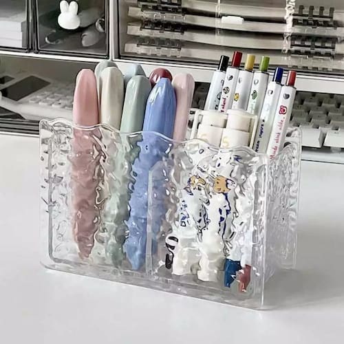 Com 2 divisórias bem distribuídas, permite separar pincéis, lápis, canetas, maquiagens, joias e pequenos acessórios, evitando bagunça e facilitando o uso no dia a dia. O material acrílico é resistente, fácil de limpar e não amarela, garantindo maior vida útil ao produto.
