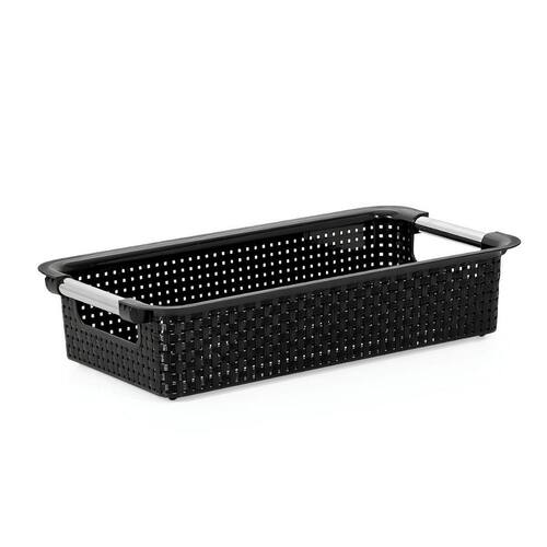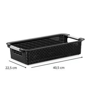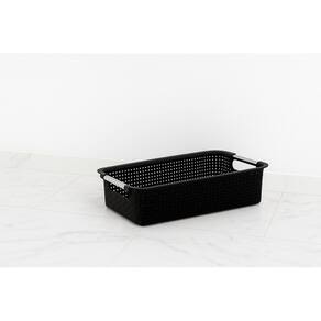 Cesto Organizador em Rattan Preto 02 Descrição: Este Cesto Organizador em Rattan Preto é a solução perfeita para quem busca praticidade sem abrir mão do design. Com capacidade de 6 litros e formato retangular, oferece amplo espaço para organizar diversos itens, mantendo seus ambientes sempre arrumados e elegantes. Características: Dimensões generosas: 40,5cm comprimento x 22,5cm largura x 9cm altura Capacidade ampla: 6 litros - ideal para armazenar diversos objetos Material premium: Rattan sintético de alta resistência com acabamento em preto Design versátil: Combina com qualquer estilo de decoração Fácil manutenção: Limpeza simples com pano seco ou levemente úmido Composição: Cesto Organizador em Rattan Preto Especificações: Marca: Niquelart; : 3 meses; ---- Aqui na Casa & Tendência você encontra os melhores utensílios domésticos e tudo que você precisa para sua cozinha ---- Marca: Não Informado