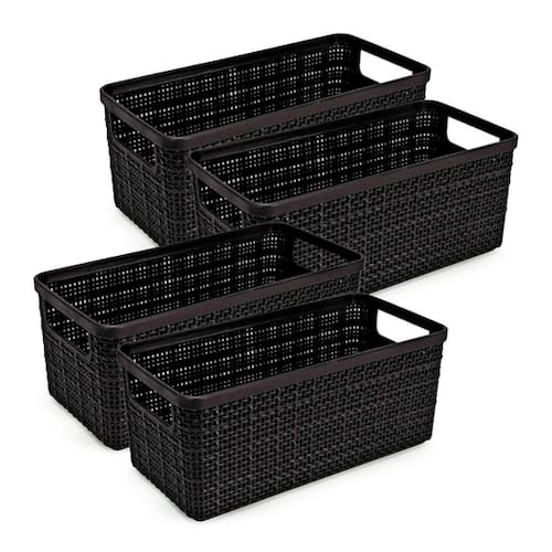 Cesto Organizador Juta Alongada Rattan de Plástico Resistente Capacidade 1,5 Litros 4 Unidades Cor: Preto DESCRITIVO TAMANHO P: Peso: 100 g Largura: 9,9 cm Comprimento: 20,8 cm Altura: 8,7 cm Capacidade: 1,5 Litros