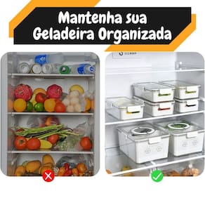 Otimização do Espaço Interno: Organização eficiente para manter tudo visível e acessível.Visualização Prática: Material transparente que facilita o controle dos Funcional: Protege contra respingos e umidade, garantindo conservação ória Interna: Separação eficiente para diferentes categorias de alimentos.
