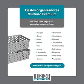 A marca 123Organizei é conhecida pela qualidade de seus produtos e pelo cuidado em oferecer soluções inteligentes para a organização de ambientes. Com esse kit de cestos, você terá uma forma eficiente de manter suas coisas em ordem, facilitando a sua vida.