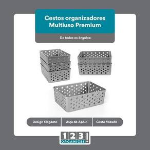 Kit 8 Cesto Multiuso Organizador Premium Cinza 123Organizei