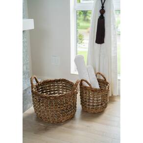 Cesto Organizador Redondo Em Fibra Natural Com Trama E Alça Mart 46x43cm -