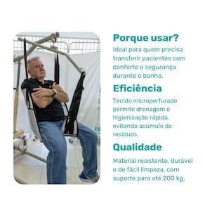 Projetado especialmente para guinchos de transferência, este acessório oferece suporte firme, drenagem eficaz e higienização prática, sendo indicado para uso domiciliar, hospitalar ou institucional.