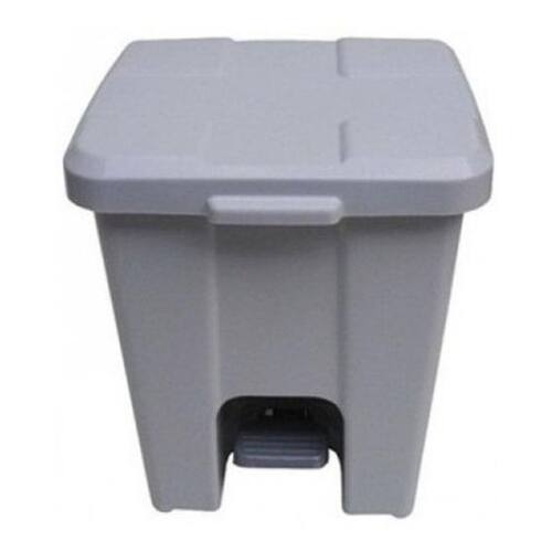Medidas: 450mm altura x 335mm largura x 310mm profundidade . Lixeira plástica quadrada com pedal.