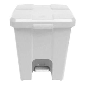 Medidas: 450mm altura x 335mm largura x 310mm profundidade . Lixeira plástica quadrada com pedal.