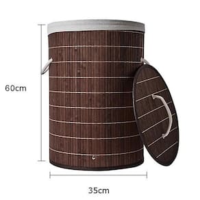 Cesto redondo forrado roupas sujas banheiro e lavanderia Cor: marrom Nome do produto: cesto redondo forrado roupas sujas banheiro e lavanderia Adorno entrancado de bambu- cesta 60x35 cm - acondicionado em caixas