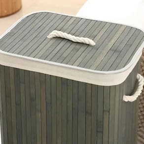 Cesto roupas sujas bambu retangular forrado banheiro grande Cor: cinza Nome do produto: cesto roupas sujas bambu retangular forrado banheiro grande Adorno entrancado de bambu - cesta 60x40x30 cm- acondicionado em caixas