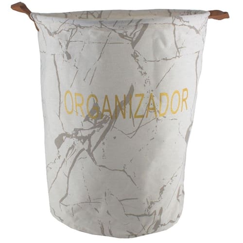 Cesto Multiuso Bege com Cinza - Organizador (Letra Dourada) - 40 x 47 cm