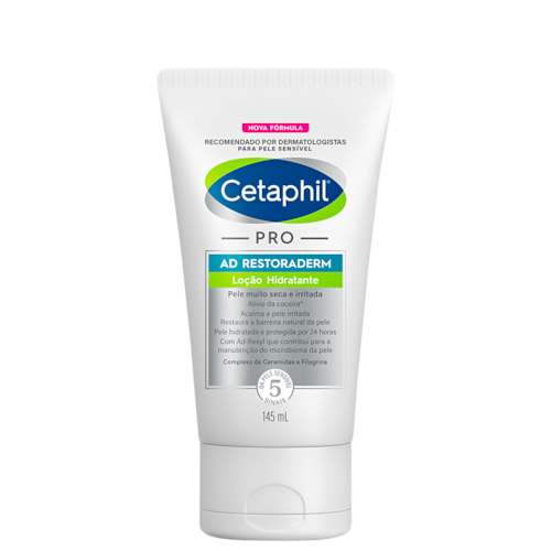 Loção hidratante facial e corporal para pele muito seca, sensível ou atópica. Cetaphil Pro AD Restoraderm possui uma ação de tratamento multifuncional, onde hidrata, acalma e alivia o prurido da pele atópica, restaurando a barreira cutânea.