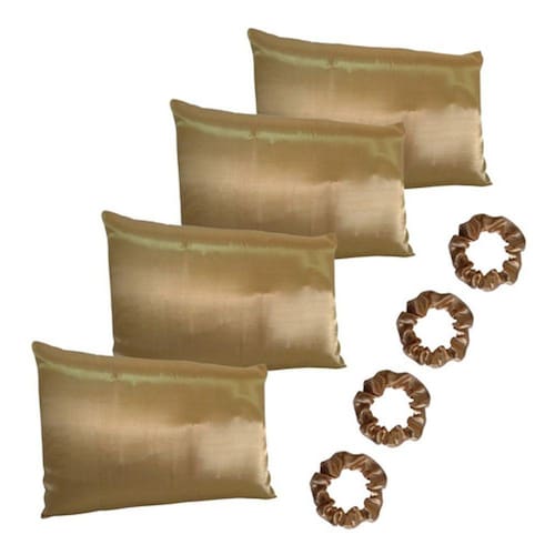 Cetim Travisseiro Travesseiro 4 Unidades Fronha + 4 Xuxinhas - DOURADO