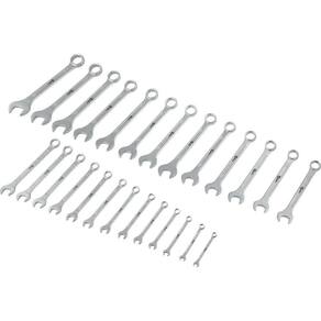 1 Jogo de chaves combinadass, composto por um suporte plástico com 26 peças, sendo: 6,0 mm, 7,0 mm, 8,0 mm, 9,0 mm, 10,0 mm, 11,0 mm, 12,0 mm, 13,0 mm, 14,0 mm, 15,0 mm, 16,0 mm, 17,0 mm, 18,0 mm, 19,0 mm, 20,0 mm, 21,0 mm, 22,0 mm, 23,0 mm, 24,0 mm, 25,0 mm, 26,0 mm, 27,0 mm, 28,0 mm, 29,0 mm, 30,0 mm e 32,0 mm.