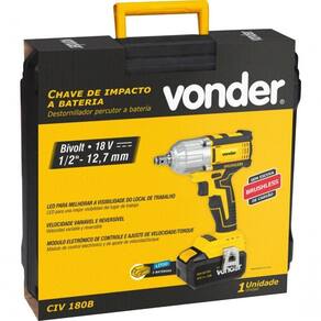 1 Chave de impacto. Acompanha: 2 baterias 18V, 1 carregador bivolt de bateria e 1 maleta plástica.