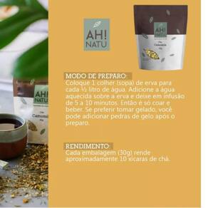 Chá de camomila 30g flor e caule linha premium ah natu O chá de camomila matricaria recutita l. tem ação principal sobre a ansiedade e o nervosismo, também combatendo a insônia. Além disso, auxilia na redução das cólicas e na eliminação dos gases. ========== Planta: camomila Nome científico: matricaria recutita l. Nome popular: camomila, camomila-alemã, camomila-comum, camomila-da-alemanhã, camomila-húngara, camomila-verdadeira, camomila-vulgar, macela-nobre, margaça, matricaria Família: arastaceae Parte utilizada: flor inflorescência e caule ========== Contraindicações: não deve ser em casos de gravidez e/ou lactação. ========== Modo de preparo: coloque 1 colher sopa de erva para cada litro de água. Adicione a água aquecida sobre a erva e deixe em infusão de 5 a 10 minutos. Então é só coar e beber. Se preferir tomar gelado, você pode adicionar pedras de gelo após o preparo. ========== Nossos ingredientes passam por um processo de esterilização que garante a segurança e a pureza dos produtos. além disso, auxilia na redução das cólicas e na eliminação dos gases. ========== Rendimento: cada embalagem 30g rende aproximadamente 10 xícaras de chá. Marca: Não Informado Ean: 7891947307559
