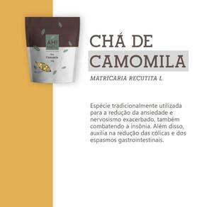 Chá de camomila 30g flor e caule linha premium ah natu O chá de camomila matricaria recutita l. tem ação principal sobre a ansiedade e o nervosismo, também combatendo a insônia. Além disso, auxilia na redução das cólicas e na eliminação dos gases. ========== Planta: camomila Nome científico: matricaria recutita l. Nome popular: camomila, camomila-alemã, camomila-comum, camomila-da-alemanhã, camomila-húngara, camomila-verdadeira, camomila-vulgar, macela-nobre, margaça, matricaria Família: arastaceae Parte utilizada: flor inflorescência e caule ========== Contraindicações: não deve ser em casos de gravidez e/ou lactação. ========== Modo de preparo: coloque 1 colher sopa de erva para cada litro de água. Adicione a água aquecida sobre a erva e deixe em infusão de 5 a 10 minutos. Então é só coar e beber. Se preferir tomar gelado, você pode adicionar pedras de gelo após o preparo. ========== Nossos ingredientes passam por um processo de esterilização que garante a segurança e a pureza dos produtos. além disso, auxilia na redução das cólicas e na eliminação dos gases. ========== Rendimento: cada embalagem 30g rende aproximadamente 10 xícaras de chá. Marca: Não Informado