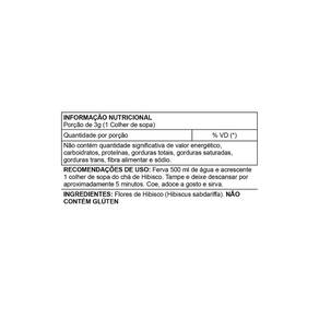 INGREDIENTES: Flores de Hibisco (Hibiscus sabdariffa) NÃO CONTÉM GLÚTEN