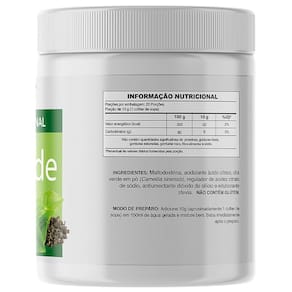 INGREDIENTES: Maltodextrina, chá verde em pó (Camellia sinensis), acidulante ácido cítrico, regulador de acidez: citrato de sódio, edulcorante stévia e antiumectante dióxido de silício. NÃO CONTÉM GLÚTEN