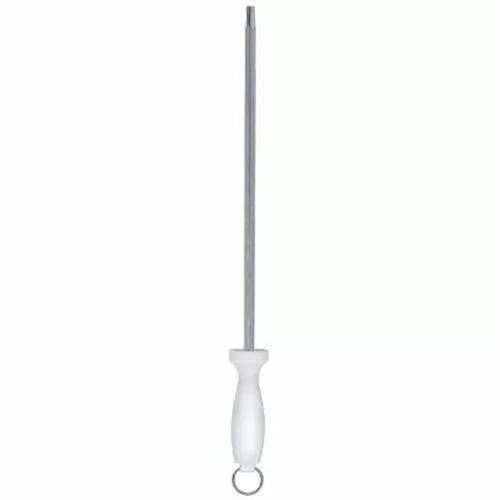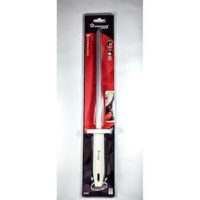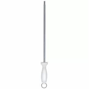 Chaira Estriada Aço 10 Profissional Cabo Branco StarHousePassos para afiação:1. Apoie a chaira em uma superfície plana e com a outra mão segure a faca.2. Posicione a faca em um ângulo de 20º em relação á chaira e deslize a lâmina até embaixo procurando manter a mesma angulação.3. Realize a mesma operação, para o lado aposto da lâmina. Repita este procedimento alternadamente, de um lado e de outro da lâmina até obter o resultado esperado.Especificações:Chaira afiador amolador de falar profissional StarHouse Possuí cabo anatômico e de material atóxico Altura: 2cmLargura: 4cmLargura de Embalagem: 7,5cmProfundidade: 31,5cmProfundidade da Embalagem: 38cmPeso: 180gConteúdo na embalagem: 01 UN Chaira Estriada Aço 10 Profissional Cabo Branco StarHouseGarantia 90 dias contra defeito de fabricação
