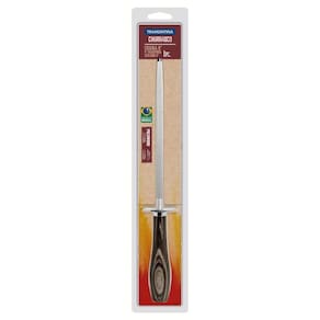 Descrição complementar: Com a Chaira Tramontina em Aço Carbono Cromado e Cabo Castanho Polywood as suas facas estarão sempre afiadas para todas as ocasiões. Nada de passar vergonha com aquela faca que não corta! A haste da chaira é produzida em aço carbono cromado, material que garantirá uma afiação de qualidade. Seu cabo de madeira tratada Polywood traz mais beleza para a peça, que pode lhe acompanhar em todos os churrascos. Com os produtos da linha Churrasco em mãos você terá a garantia que fará bonito em todos os momentos. Orientações A haste de aço carbono revestida com cromo-duro que garante uma maior durabilidade e precisão para a afiação. O cabo de madeira tratada Polywood é resistentes à impactos e alta temperaturas garantindo maior resistência e durabilidade. O cabo ergonômico proporciona maior segurança, equilíbrio e conforto. A chaira possui um protetor para a mão do usuário. Pode ir à máquina de lavar louças facilitando seu dia a dia. Características Gerais EAN13 7891112177857 DUN14 17891112177854 NCM 8203.10.90 Peso Líquido 0,1950 kg. Peso Bruto 0,2100 kg. Metragem 0,000964 m³. Dimensões Embalagem (Compr. X Larg. X Alt.) 34x 70x 405 mm. Dimensões Produto (Compr. X Larg. X Alt.) 327x 44x 28 mm. Cor 1 4E3629 Hexa Observações Tenha cuidado ao manusear produtos cortantes e perfurantes e mantenha-os fora do alcance das crianças. Para maior durabilidade dos produtos recomenda-se secar bem antes de guardar, mesmo após lavagem em máquina. Para descarte dos produtos e embalagens siga as orientações de reciclagem vigentes.