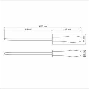 Pode ir à máquina de lavar louças facilitando seu dia a dia.Características GeraisEAN137891112177857DUN1417891112177854NCM8203.10.90Peso Líquido0,1950 kg.Peso Bruto0,2100 kg.Metragem0,000964 m.Dimensões Embalagem (Compr. X Larg. X Alt.)34x 70x 405 mm.Dimensões Produto (Compr. X Larg. X Alt.)327x 44x 28 mm.Cor 14E3629 HexaObservações
