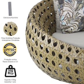 CARACTERISTICAS: - Pecas produzidas em aluminio e revestidas em fibra sintetica com protecao UV. - - As cores dos produtos podem variar de acordo com o ambiente e com a iluminacao em que as fotos foram tiradas. - Estofado em couro nautico da Kelsons ou tecido acquablock da Karsten. - Utilizamos a espuma D28 para o assento.