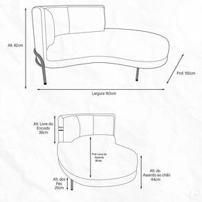 Outras Medidas: Altura do Encosto: 38 cm Altura do Assento ao Chão: 44 cm Altura dos Pés: 20 cm Largura do Assento: 115 cm Largura do Braço: 32 cm