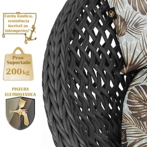 A trama artesanal em corda náutica adiciona um toque moderno e elegante, além de proporcionar flexibilidade e conforto inigualáveis. Para completar, o estofado em tecido impermeável assegura praticidade e bem-estar em qualquer ambiente, seja na área externa ou interna.