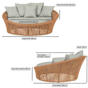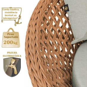 A trama artesanal em corda náutica adiciona um toque moderno e elegante, além de proporcionar flexibilidade e conforto inigualáveis. Para completar, o estofado em tecido impermeável assegura praticidade e bem-estar em qualquer ambiente, seja na área externa ou interna.