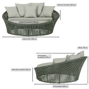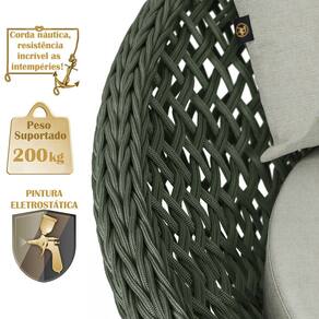 A trama artesanal em corda náutica adiciona um toque moderno e elegante, além de proporcionar flexibilidade e conforto inigualáveis. Para completar, o estofado em tecido impermeável assegura praticidade e bem-estar em qualquer ambiente, seja na área externa ou interna.