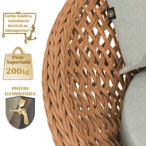 A trama artesanal em corda náutica adiciona um toque moderno e elegante, além de proporcionar flexibilidade e conforto inigualáveis. Para completar, o estofado em tecido impermeável assegura praticidade e bem-estar em qualquer ambiente, seja na área externa ou interna.