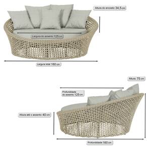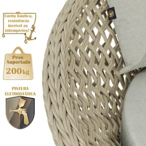 A trama artesanal em corda náutica adiciona um toque moderno e elegante, além de proporcionar flexibilidade e conforto inigualáveis. Para completar, o estofado em tecido impermeável assegura praticidade e bem-estar em qualquer ambiente, seja na área externa ou interna.