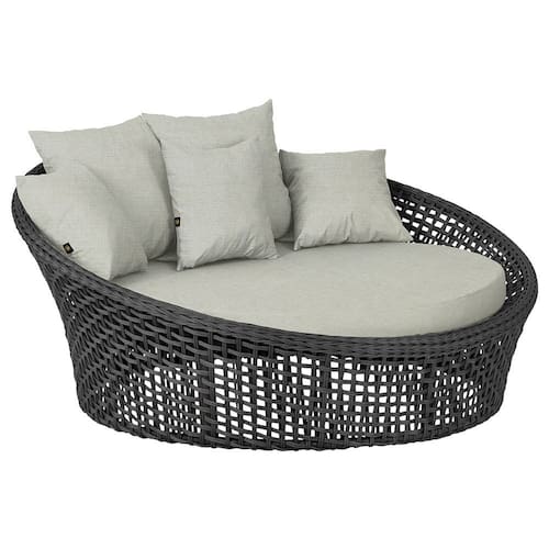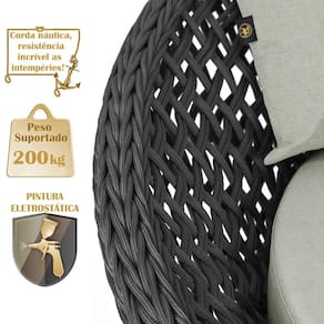 A trama artesanal em corda náutica adiciona um toque moderno e elegante, além de proporcionar flexibilidade e conforto inigualáveis. Para completar, o estofado em tecido impermeável assegura praticidade e bem-estar em qualquer ambiente, seja na área externa ou interna.