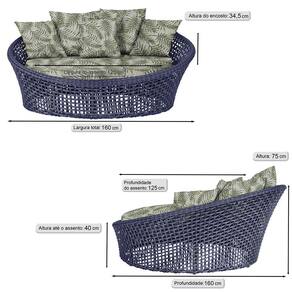 A trama artesanal em corda náutica adiciona um toque moderno e elegante, além de proporcionar flexibilidade e conforto inigualáveis. Para completar, o estofado em tecido impermeável assegura praticidade e bem-estar em qualquer ambiente, seja na área externa ou interna.