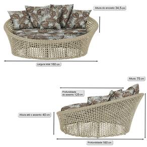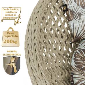A trama artesanal em corda náutica adiciona um toque moderno e elegante, além de proporcionar flexibilidade e conforto inigualáveis. Para completar, o estofado em tecido impermeável assegura praticidade e bem-estar em qualquer ambiente, seja na área externa ou interna.