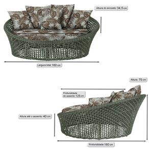 A trama artesanal em corda náutica adiciona um toque moderno e elegante, além de proporcionar flexibilidade e conforto inigualáveis. Para completar, o estofado em tecido impermeável assegura praticidade e bem-estar em qualquer ambiente, seja na área externa ou interna.