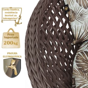 A trama artesanal em corda náutica adiciona um toque moderno e elegante, além de proporcionar flexibilidade e conforto inigualáveis. Para completar, o estofado em tecido impermeável assegura praticidade e bem-estar em qualquer ambiente, seja na área externa ou interna.