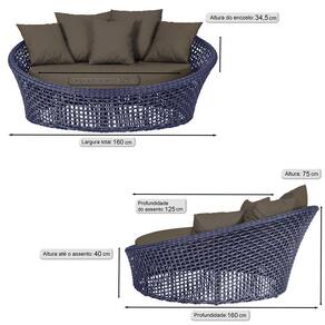 A trama artesanal em corda náutica adiciona um toque moderno e elegante, além de proporcionar flexibilidade e conforto inigualáveis. Para completar, o estofado em tecido impermeável assegura praticidade e bem-estar em qualquer ambiente, seja na área externa ou interna.