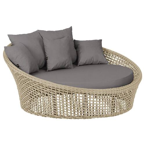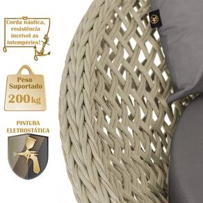 A trama artesanal em corda náutica adiciona um toque moderno e elegante, além de proporcionar flexibilidade e conforto inigualáveis. Para completar, o estofado em tecido impermeável assegura praticidade e bem-estar em qualquer ambiente, seja na área externa ou interna.