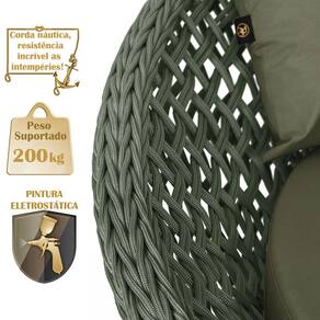 A trama artesanal em corda náutica adiciona um toque moderno e elegante, além de proporcionar flexibilidade e conforto inigualáveis. Para completar, o estofado em tecido impermeável assegura praticidade e bem-estar em qualquer ambiente, seja na área externa ou interna.