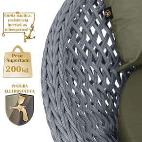 A trama artesanal em corda náutica adiciona um toque moderno e elegante, além de proporcionar flexibilidade e conforto inigualáveis. Para completar, o estofado em tecido impermeável assegura praticidade e bem-estar em qualquer ambiente, seja na área externa ou interna.