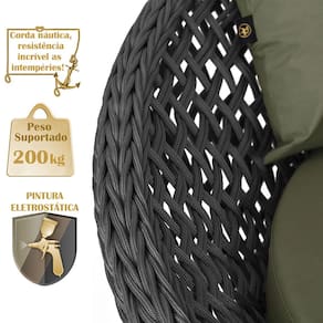A trama artesanal em corda náutica adiciona um toque moderno e elegante, além de proporcionar flexibilidade e conforto inigualáveis. Para completar, o estofado em tecido impermeável assegura praticidade e bem-estar em qualquer ambiente, seja na área externa ou interna.