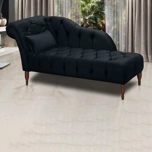Chaise Longue Divã Montreal em Madeira de Reflorestamento Veludo 160cm Speciale Home - Preto