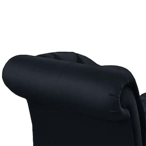 Ele possui estofamento e costura em capitonê e pés de madeira clássicos. Além de ser confortável, tornando-o perfeito para leitura, atendimento a clientes ou momentos de lazer.