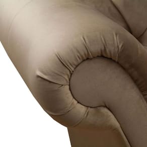 INFORMACOES SOBRE PRODUTO: Materiais da estrutura: Madeira de Reflorestamento Material dos pes: Madeira de Reflorestamento Tecido: Veludo Espuma utilizada: Espuma D-23 Selada IMETRO Lado do Encosto Braco: Direito Peso maximo suportado: 120 kg